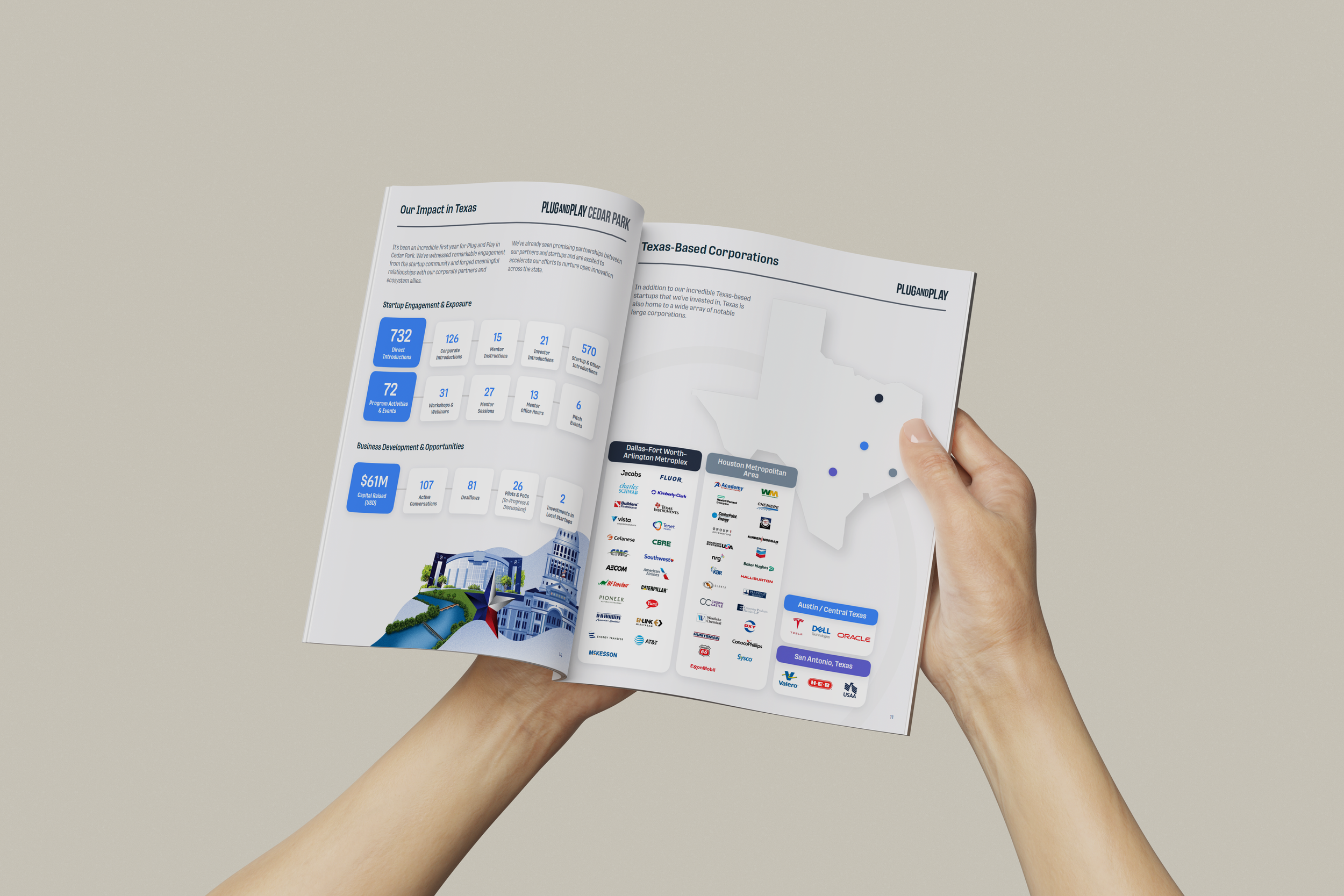 For this project, I designed the editorial spreads for a Texas overview book created for the Texas team. The book highlights regional milestones, key initiatives, and performance insights. I worked closely with the content team to gather statistics, shape content, and ensure clarity before translating the information into clear, engaging layouts. Each spread was thoughtfully designed to balance imagery, typography, and structure, maintaining visual consistency and an easy reading flow throughout the book.